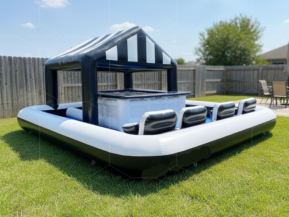 Turn your backyard into the ultimate party destination with our Inflatable Pool Bar! Measuring a spacious 20ft wide x 20ft long x 10ft high, this inflatable bar with pool is designed for fun, relaxation, and convenience. Whether you're hosting a summer pool party, a tropical-themed event, or just enjoying a laid-back day in the sun, this inflatable pool bar is a game-changer. Customize with your color choices and add your logo for no additional cost.